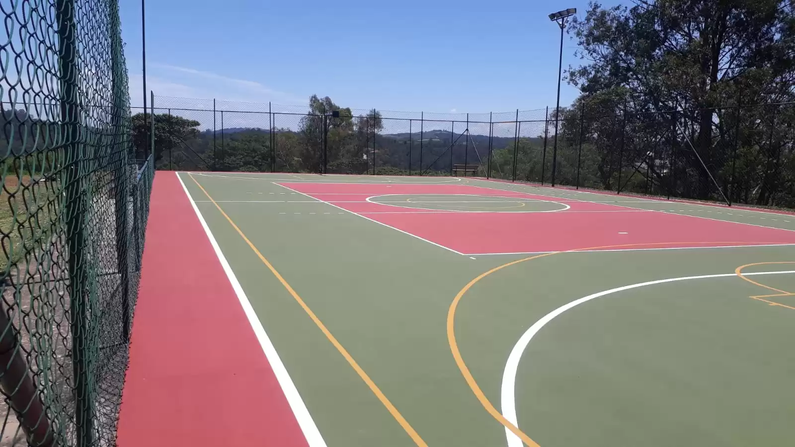 Em nossas quadras poliesportivas, a qualidade do acabamento é essencial. Utilizamos materiais de revestimento de alta performance, incluindo resinas especiais que protegem o piso e mantêm as cores das linhas demarcatórias vibrantes e precisas. Este acabamento não só preserva a funcionalidade essencial para diversos esportes, mas também oferece uma resistência superior ao desgaste diário. Fácil de manter e limpar, garante que a quadra mantenha sua aparência impecável por muito mais tempo, refletindo nosso compromisso com a excelência em cada projeto.